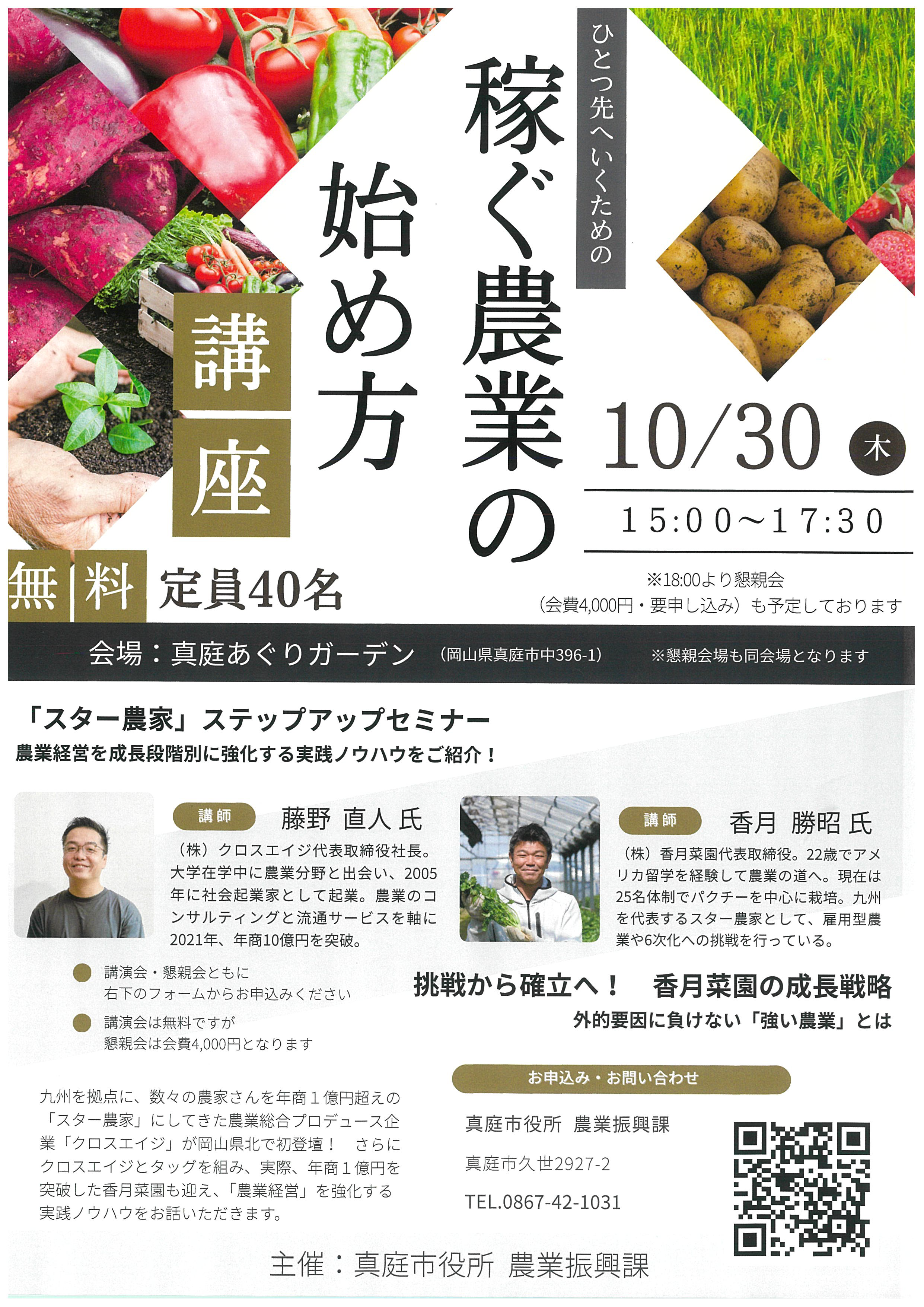 若手農業者向けの講座となりますが、農業者でない方も無料で参加いただけます。