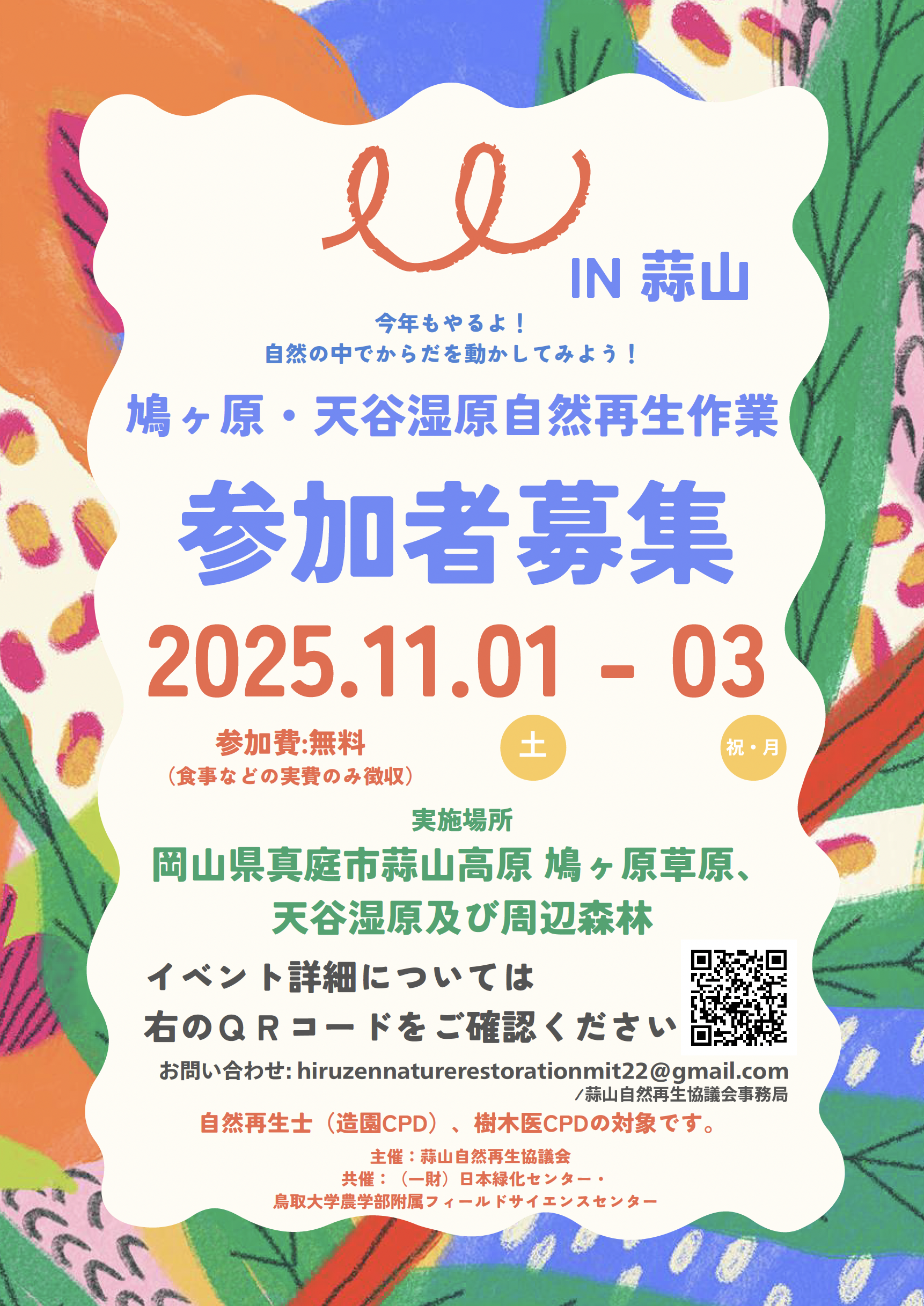 ◆お問合せ hiruzen.nature.restoration.mit22@gmail.com(蒜山自然再生協議会)