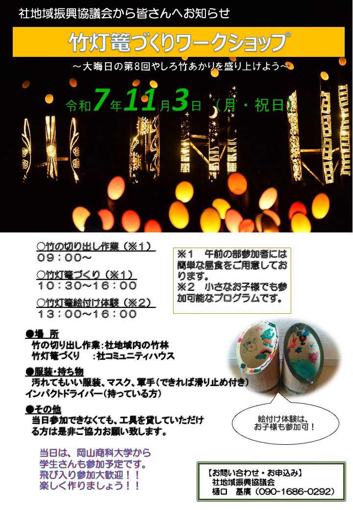 4. 竹灯篭づくりワークショップ〜大晦日の第8回やしろ竹あかりを盛り上げよう〜
