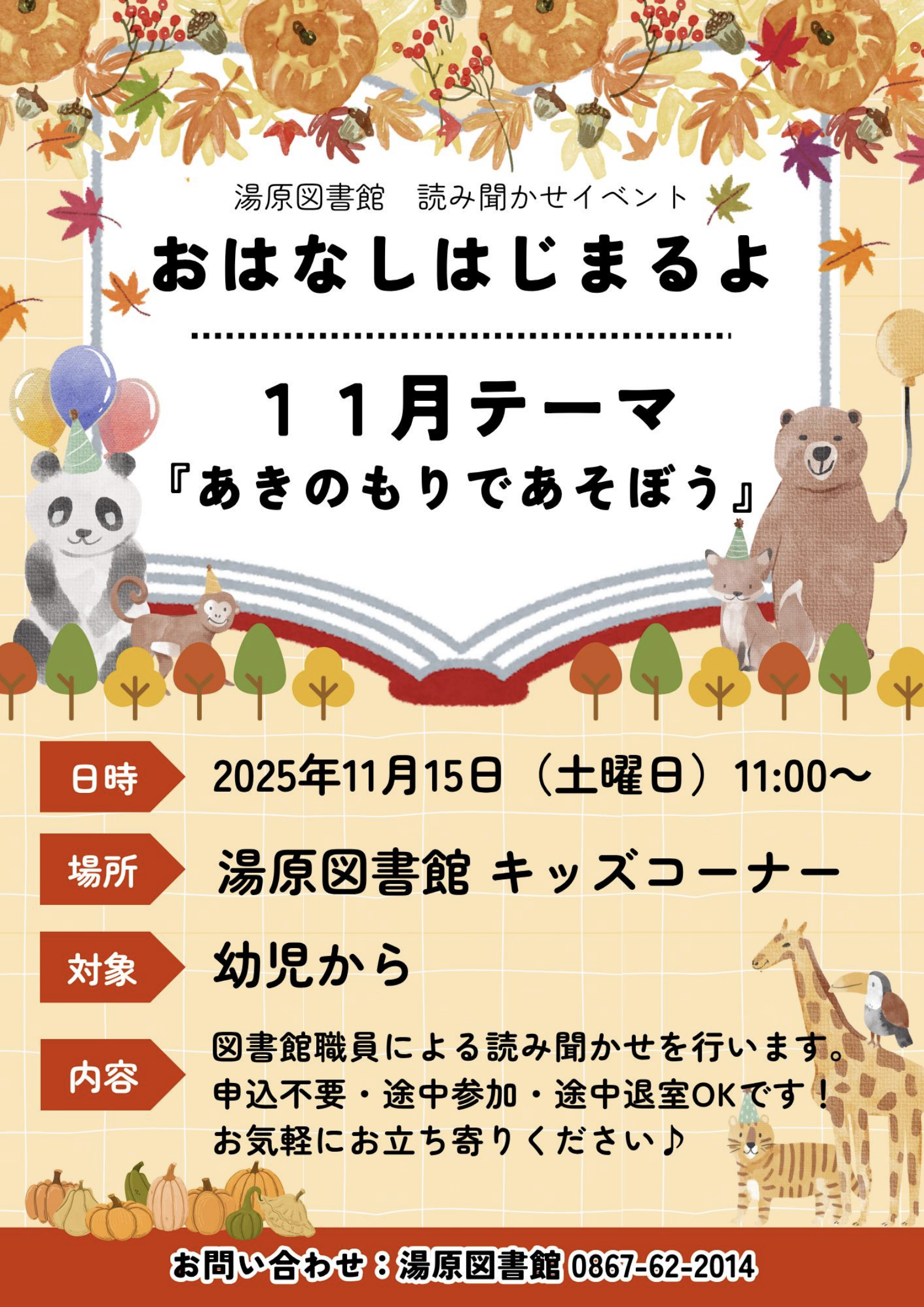 ◆場 所 湯原図書館 キッズコーナー(岡山県真庭市豊栄1515)