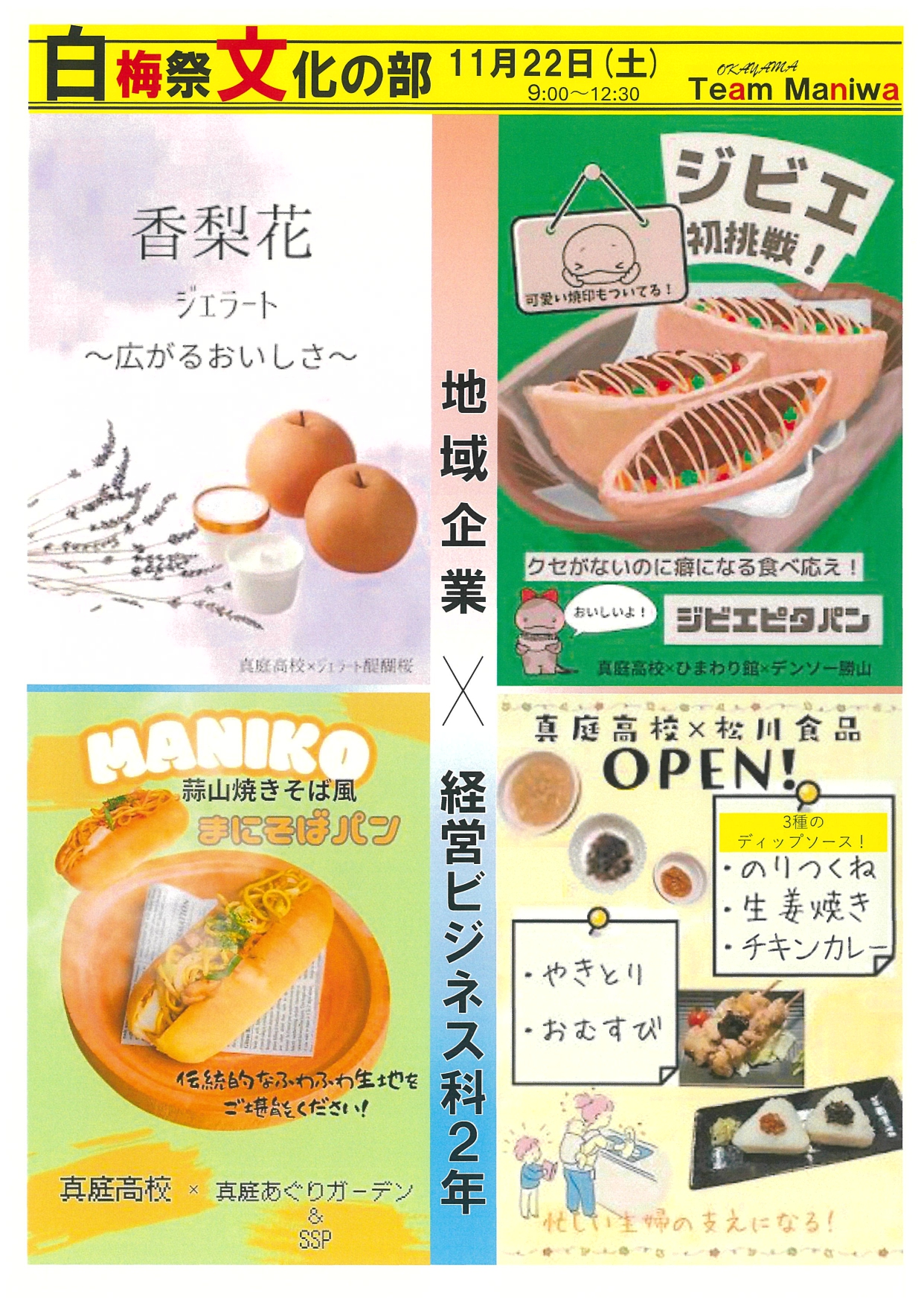 模擬店では、経営ビジネス科2年生が「商品開発と流通」の授業で地元企業と連携した商品の販売があります。