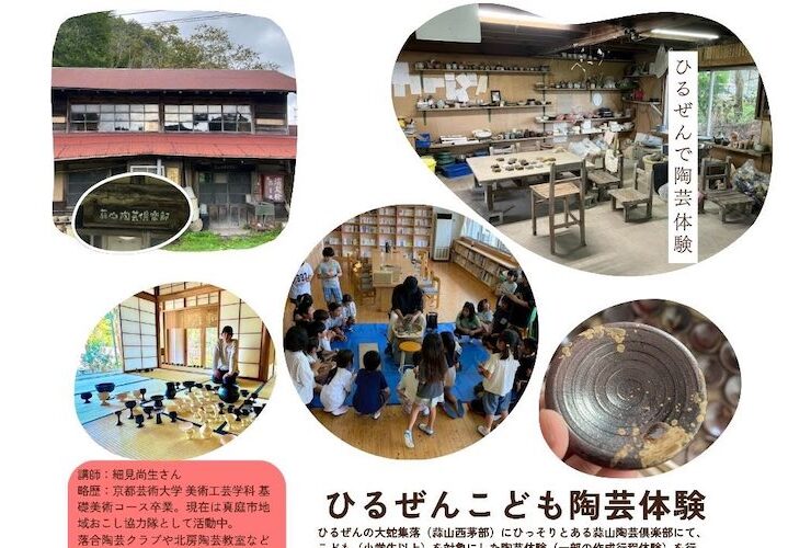 蒜山西茅部の「蒜山陶芸倶楽部」にて、子ども向けの陶芸体験が開催されます。