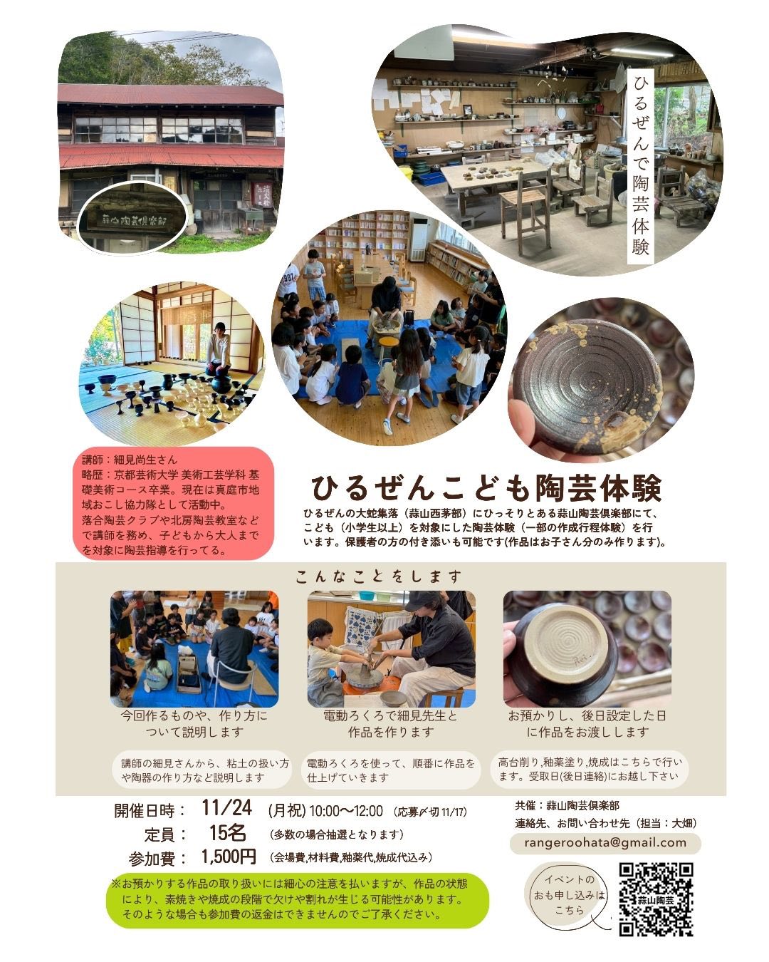 ひるぜんこども陶芸体験 ※申込締切11/17
