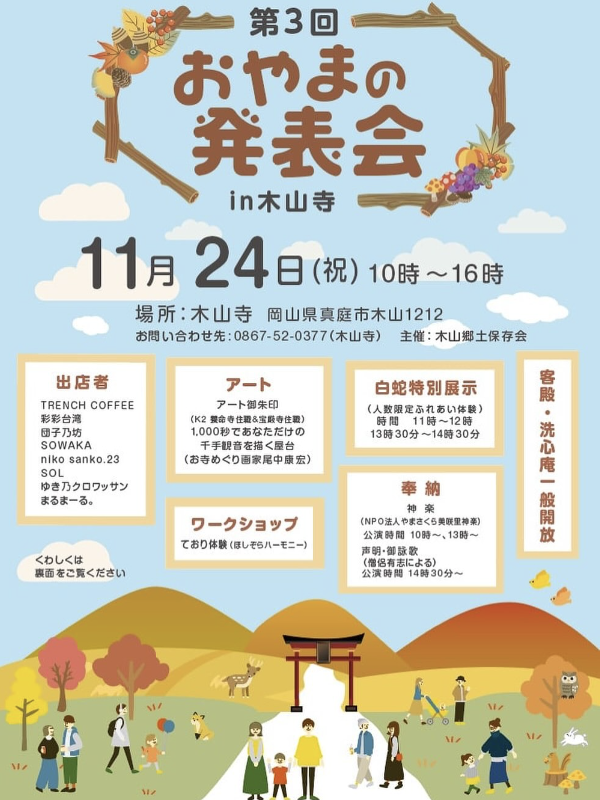 木山寺で、今年も「おやまの発表会」が開催されます。