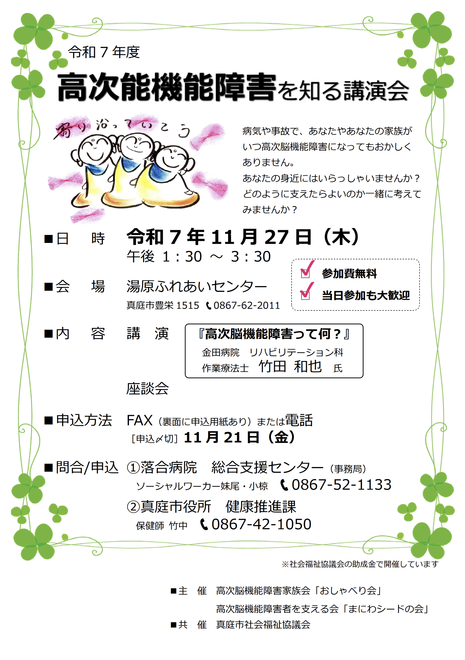 ◆申 込 0867-52-1133(落合病院 総合支援センター)