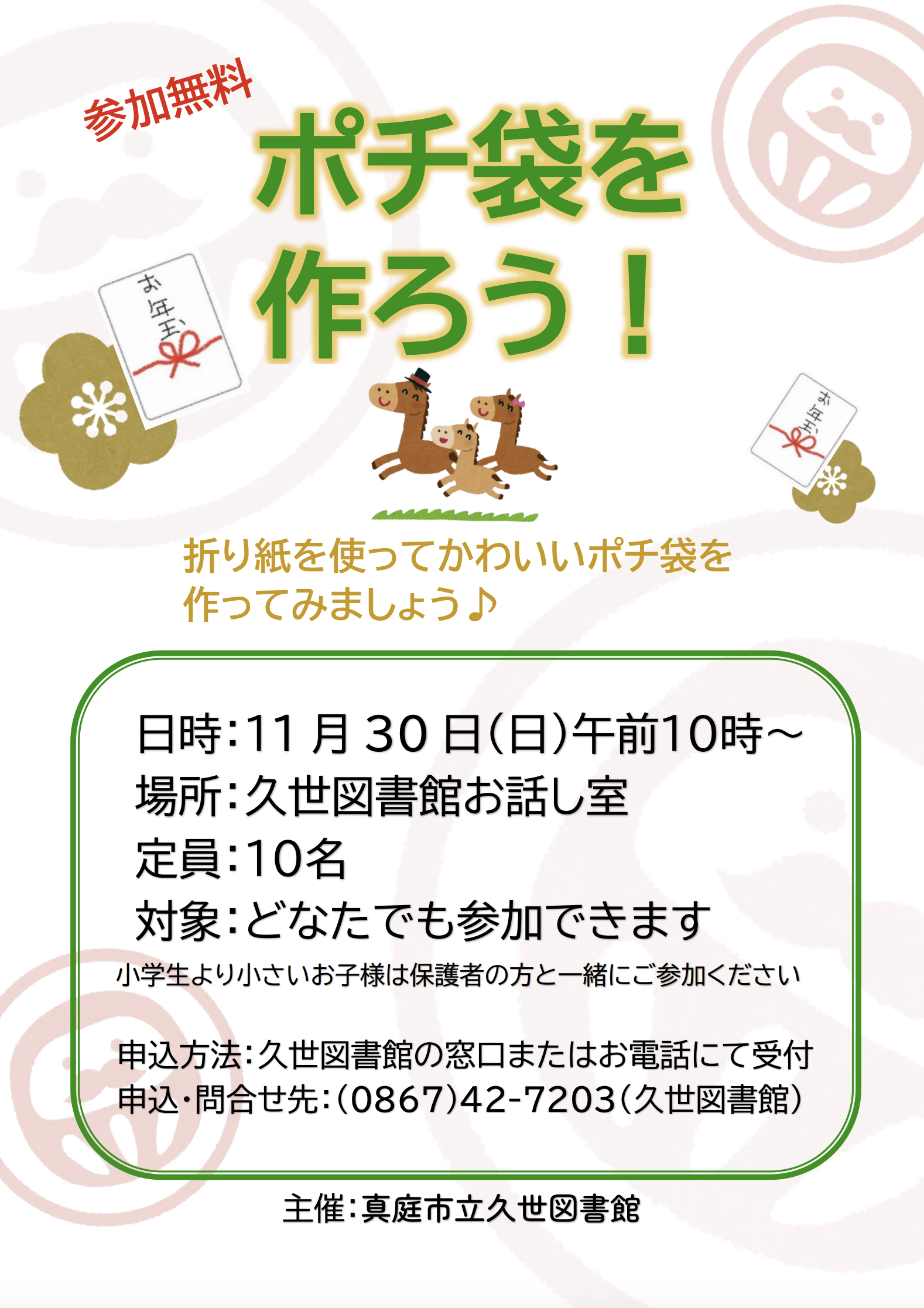 ◆申し込み 0867-42-7203(久世図書館)または久世図書館の窓口