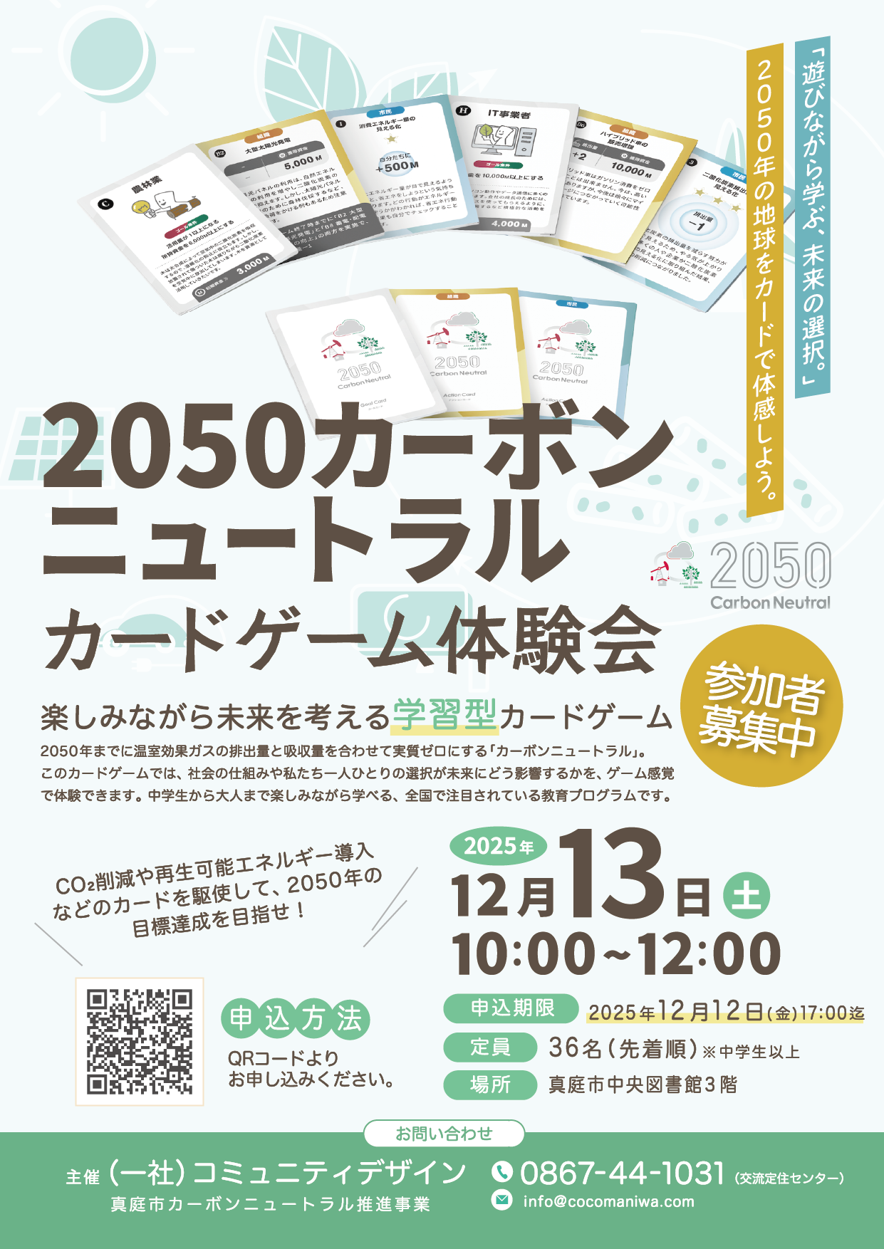 「2050カーボンニュートラル」というカードゲームの体験会を実施します。