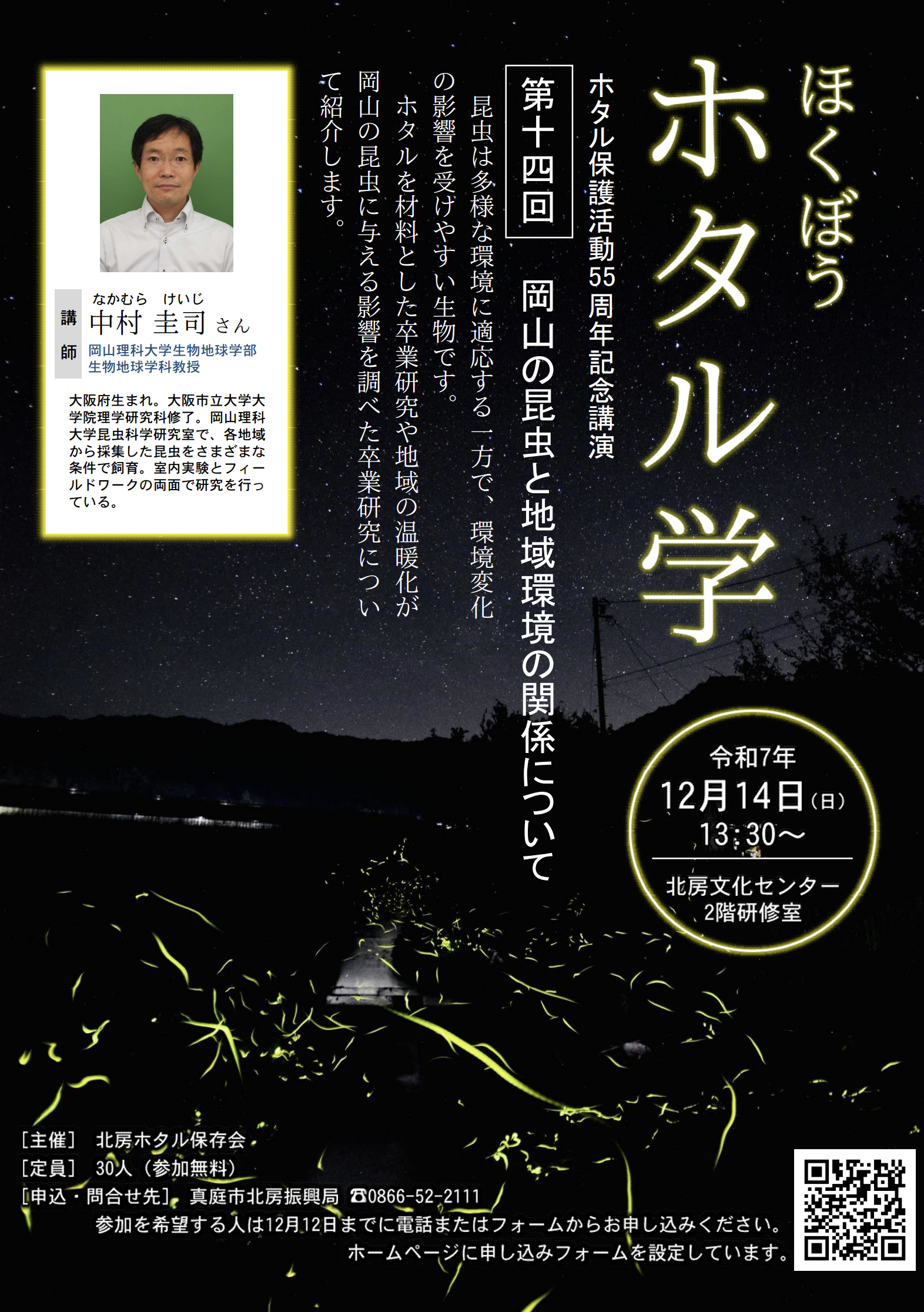 【12/12締切】ほくぼうホタル学|岡山の昆虫と地域環境の関係について