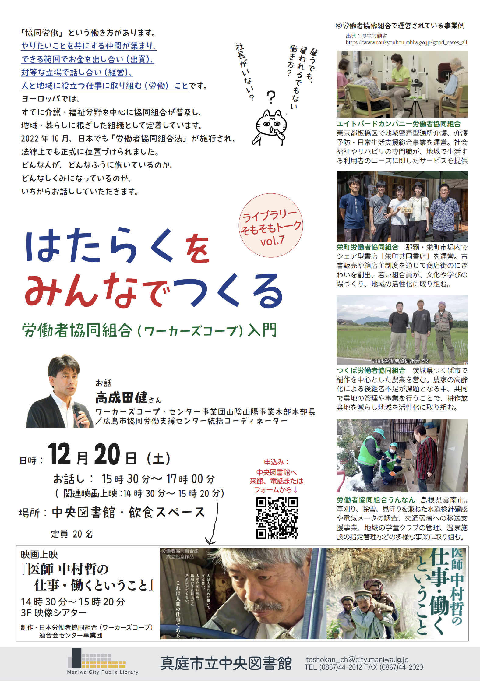 ◆場 所 真庭市立中央図書館 3F映像シアター(岡山県真庭市勝山53-1)