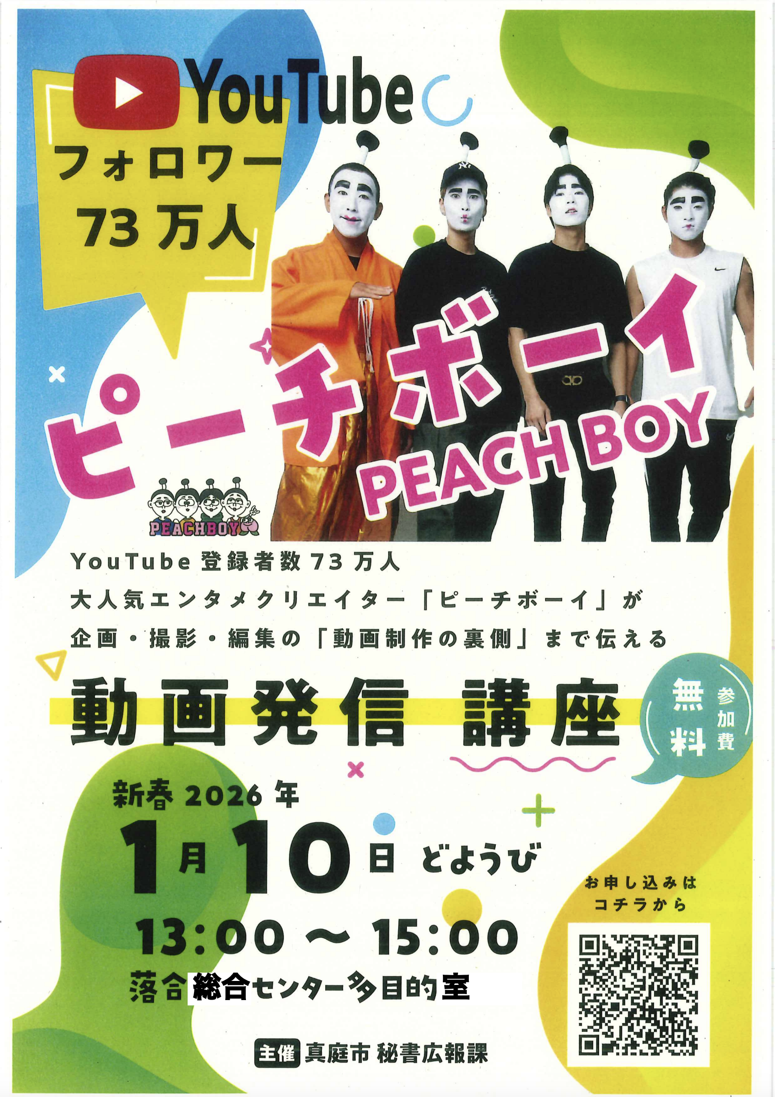 岡山県北部在住の人気ユーチューバー「ピーチボーイ」による、動画発信講座が開催されます。