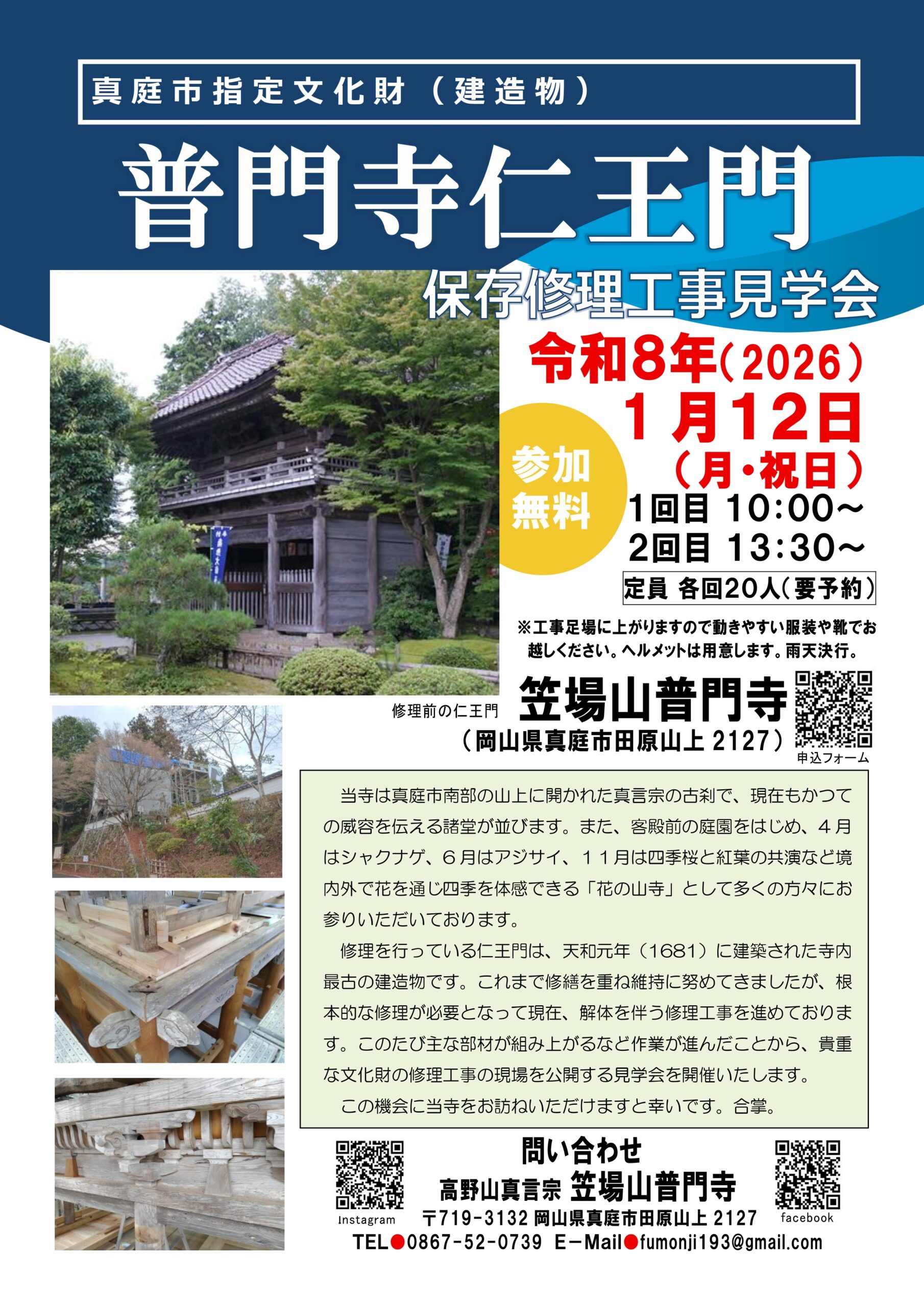 ◆問合せ 0867-52-0739(笠場山普門寺)