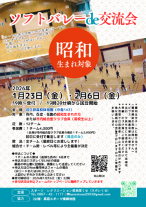 【1/23・2/6】ソフトバレーde交流会(1/16申込締切)