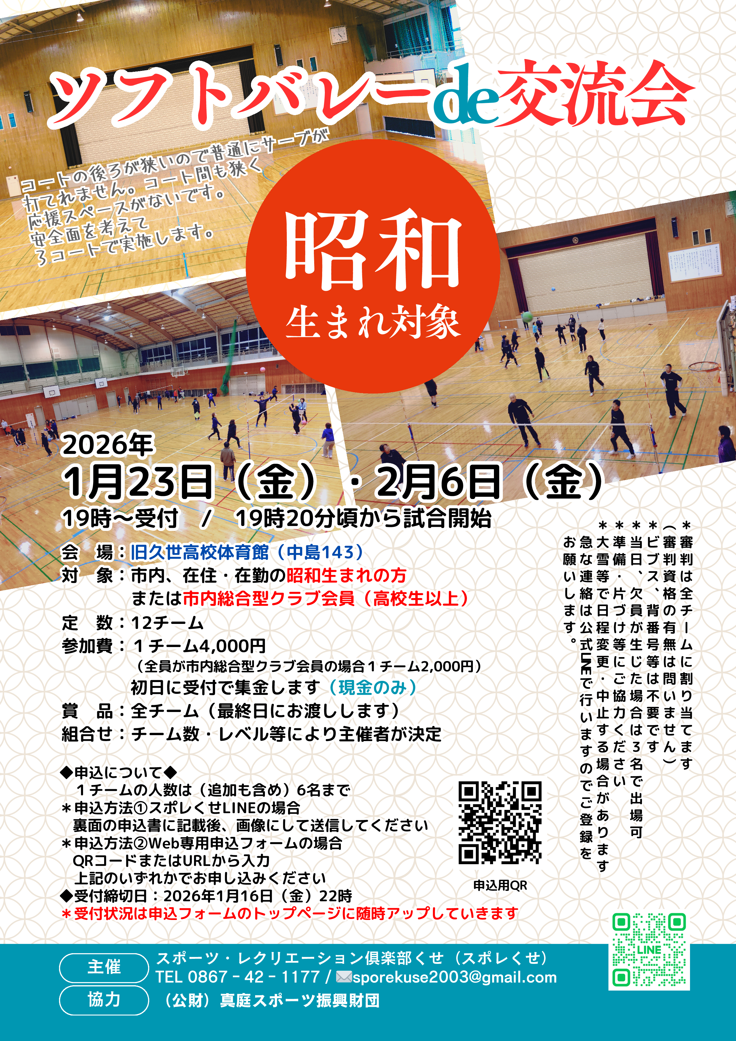 ◆対 象 市内在住・在勤の昭和生まれの方、または市内総合型クラブ会員(高校生以上)