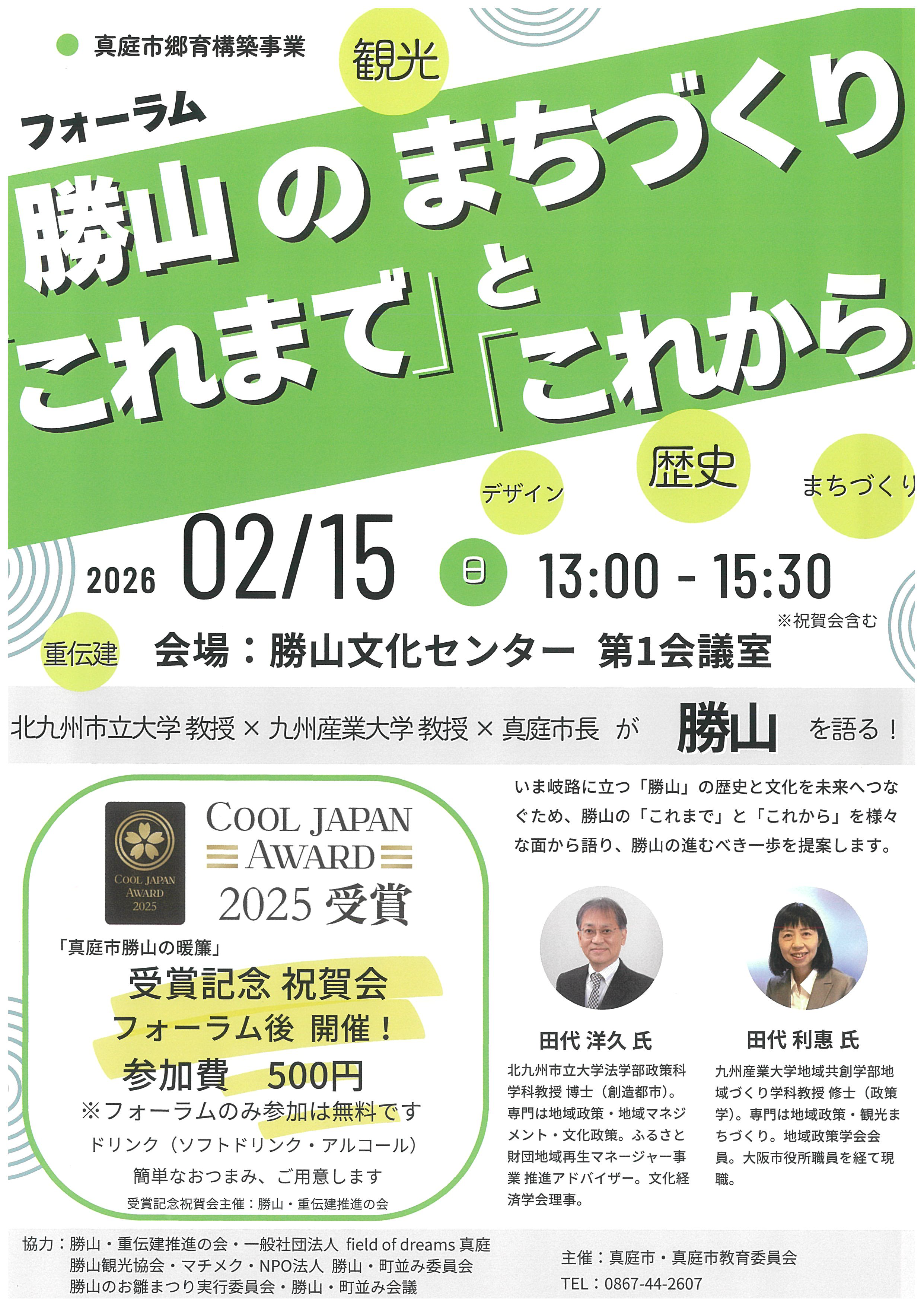フォーラム後には、勝山の暖簾が「COOL JAPAN AWARD 2025」の受賞を記念した祝賀会が行われます。