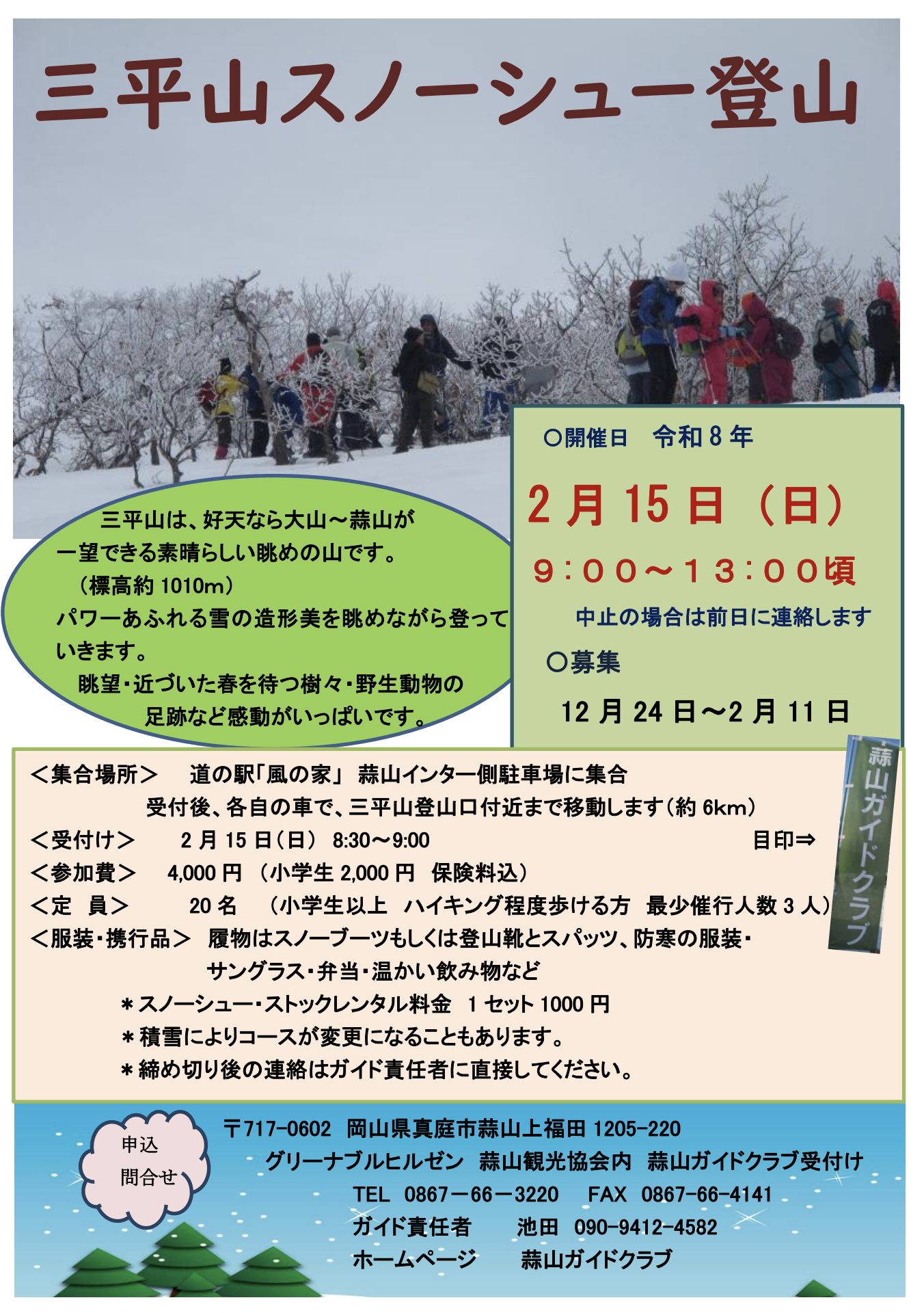 【雪の蒜山を楽しむツアー】三平山スノーシュー登山ツアー