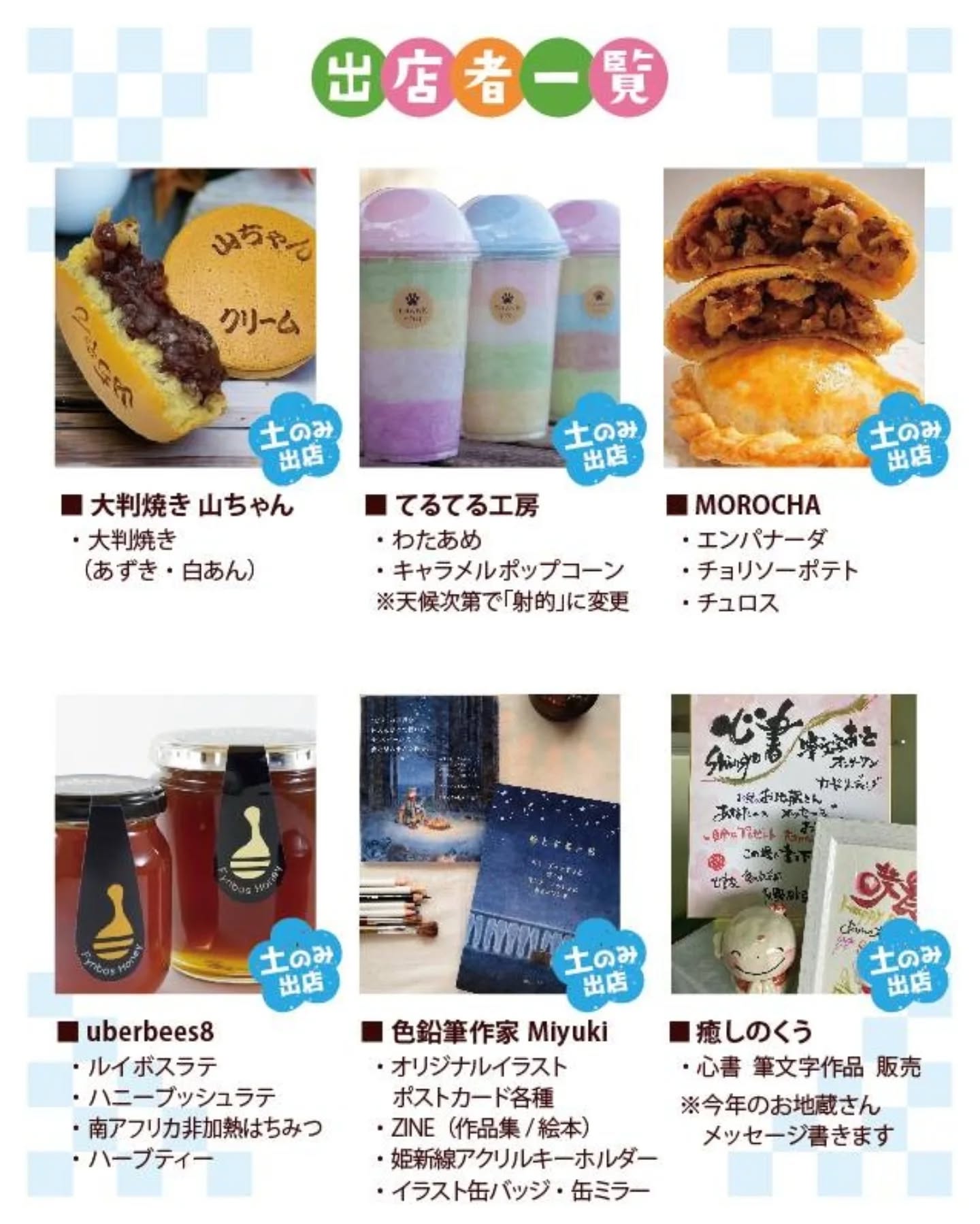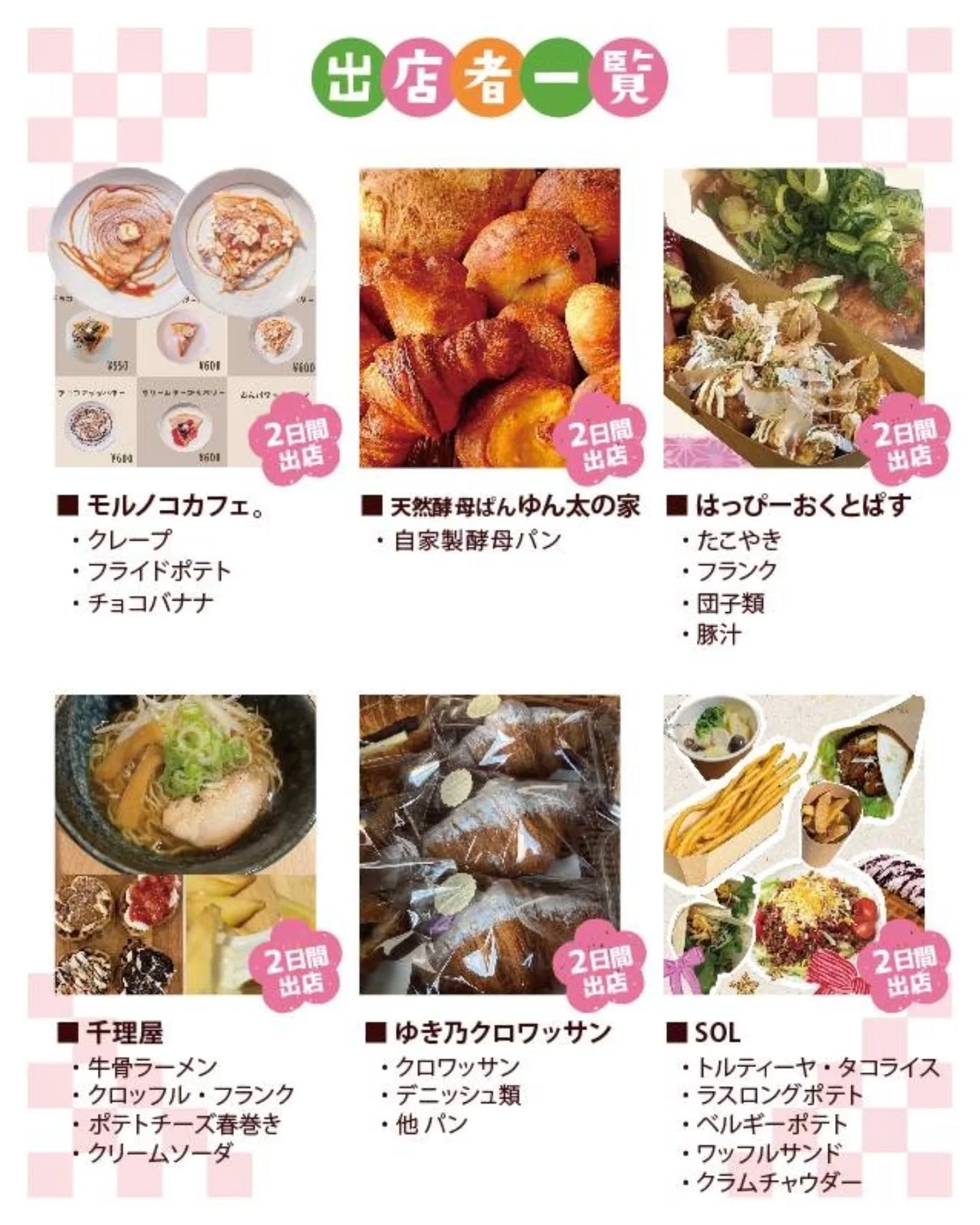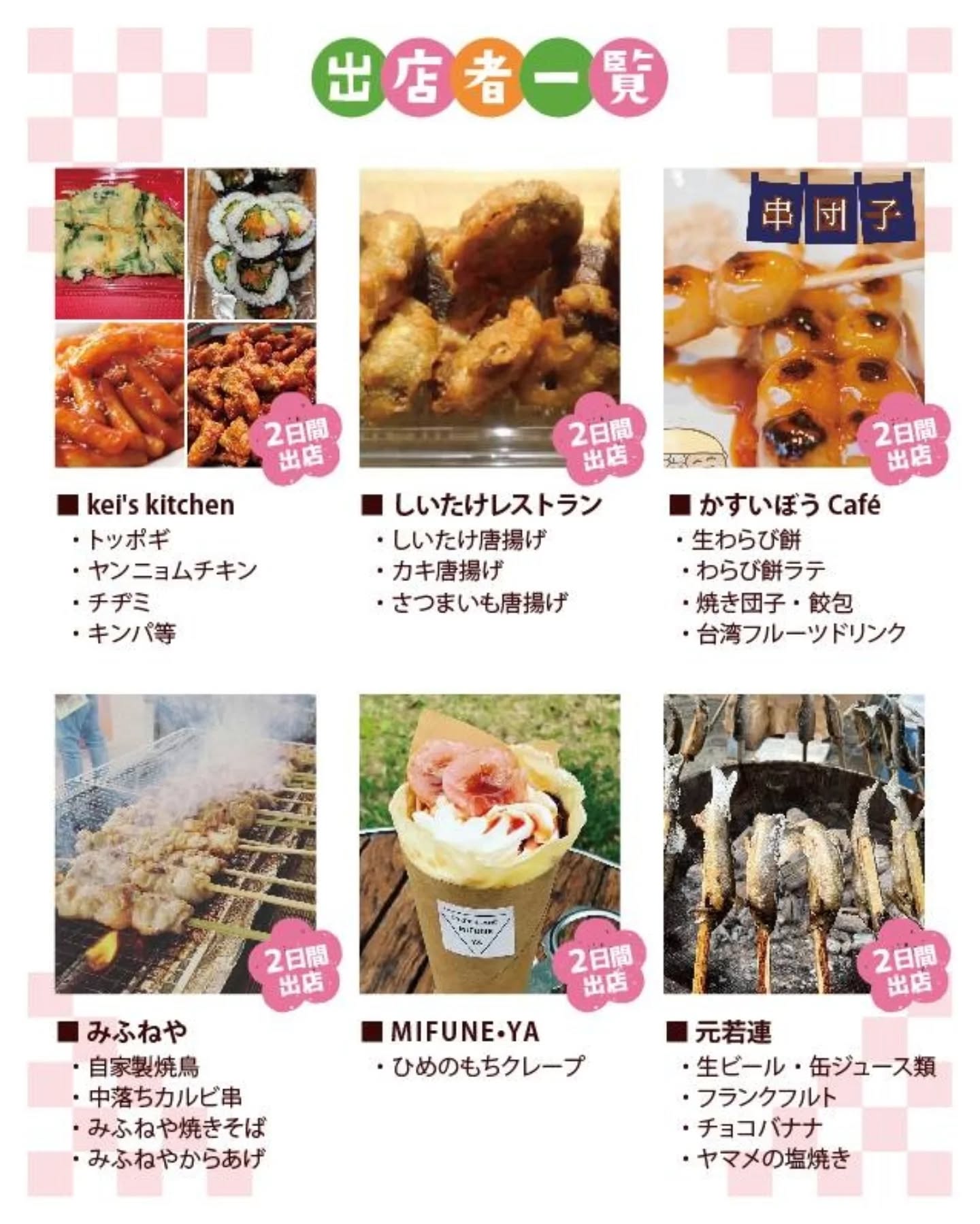 2日間で、飲食30ブース、物販11ブースが出店予定!