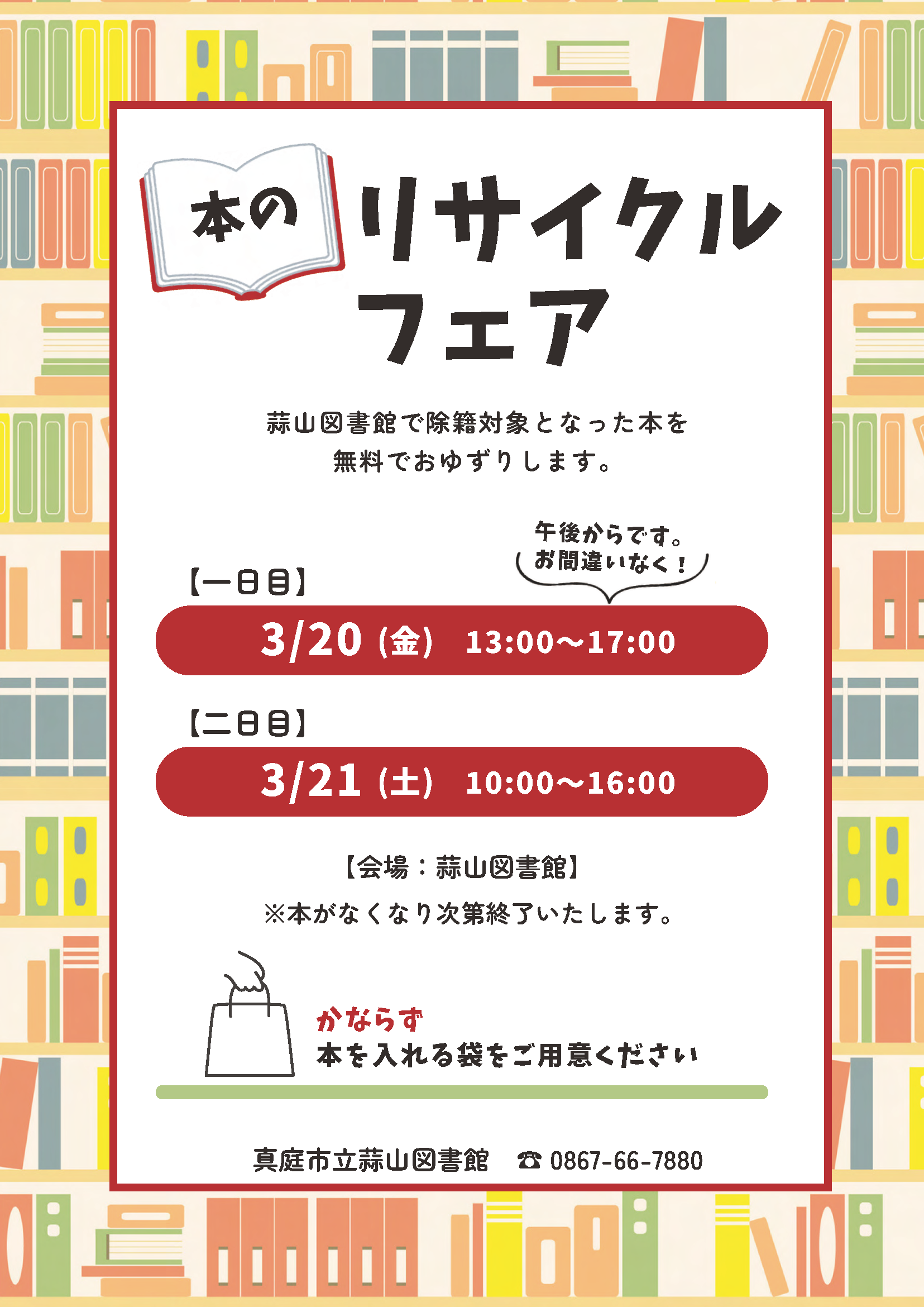 【3/20~3/21】本のリサイクルフェア|蒜山図書館