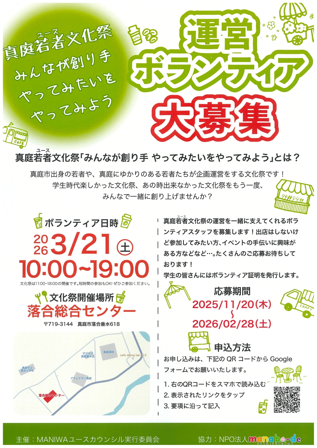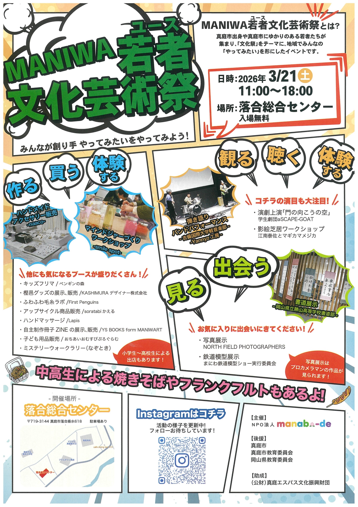 3月21日(土)に落合総合センターを会場に、『真庭ユース文化祭』を開催いたします。