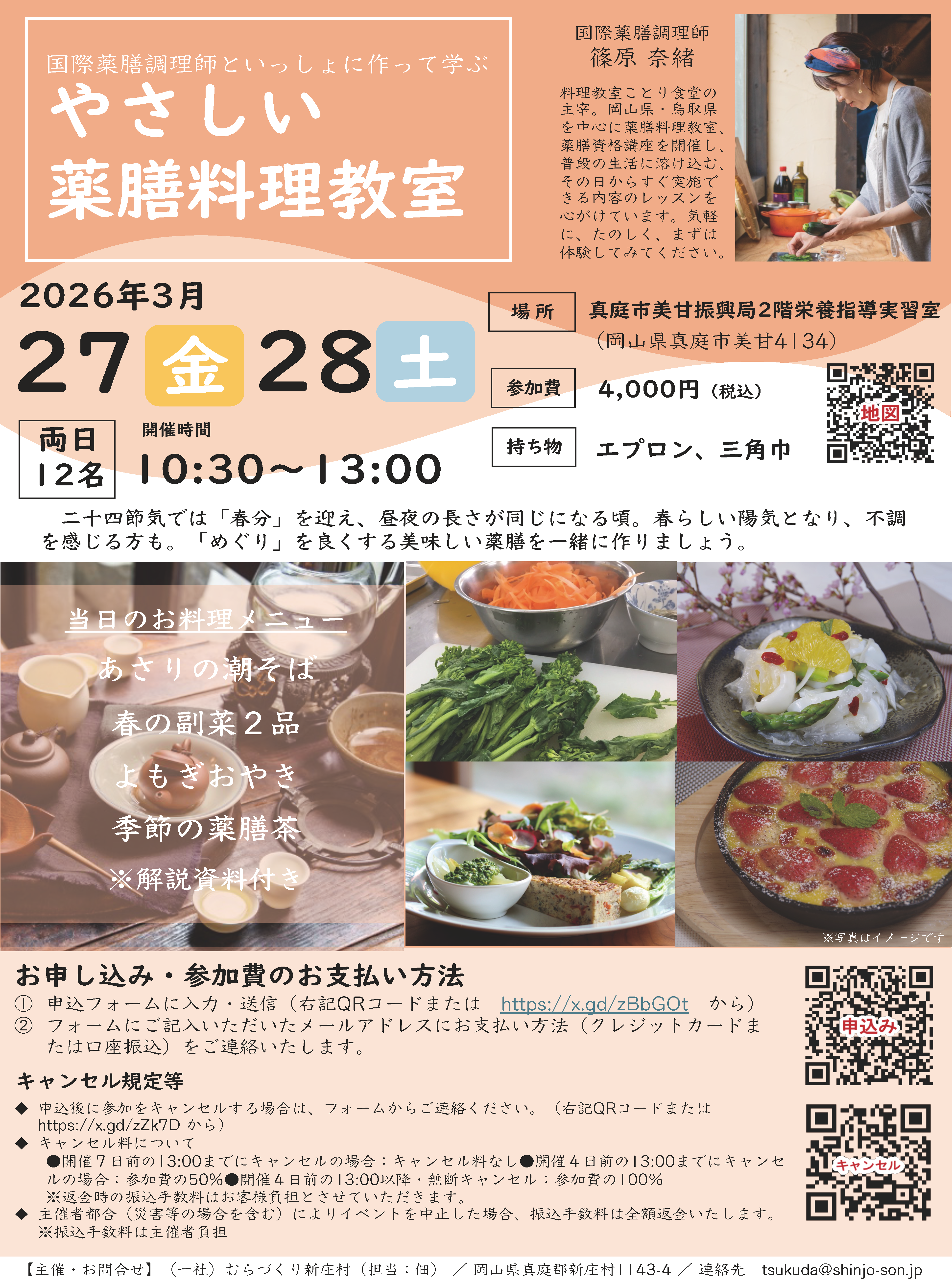 【限定12名】3/27・28開催!国際薬膳調理師と作って学ぶ「やさしい料理教室」