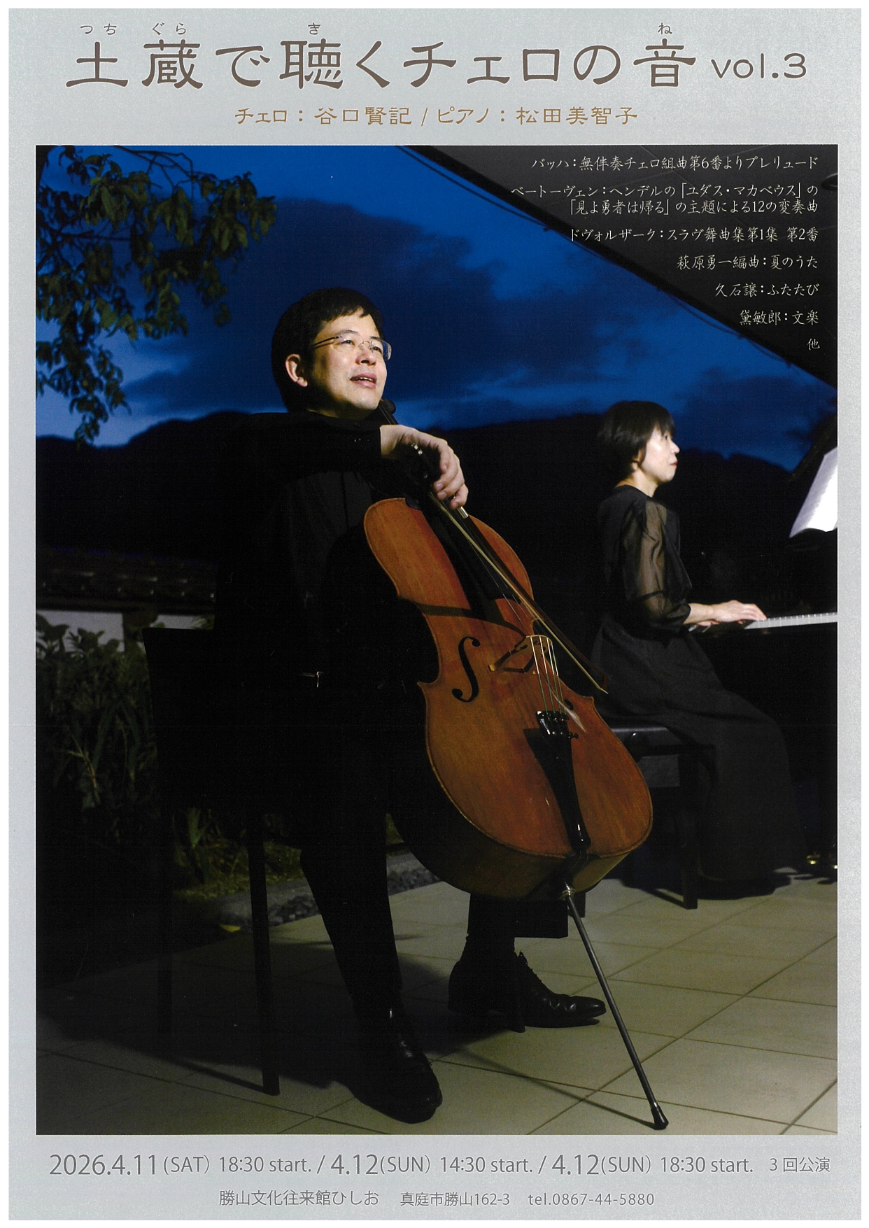 勝山文化往来館ひしおでチェロのコンサートが行われます。