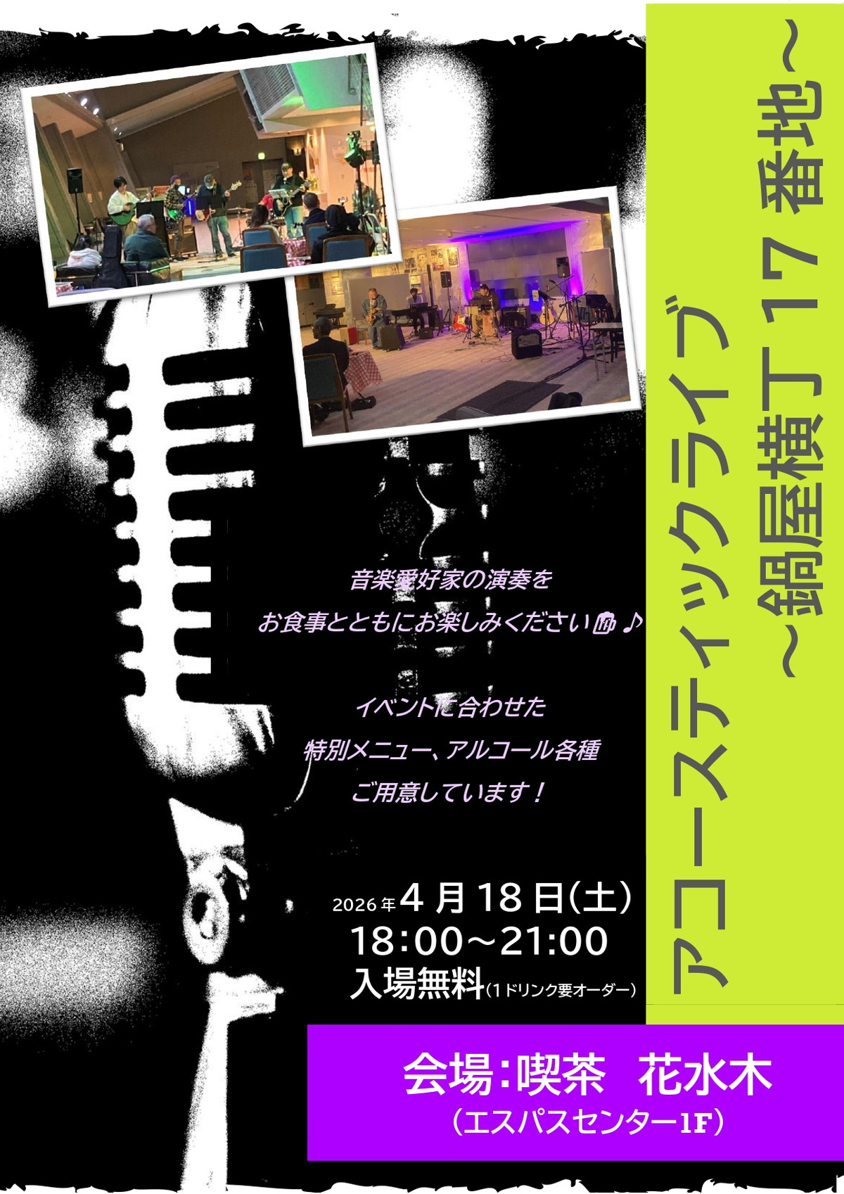 喫茶花水木で、アコースティックライブが開催されます。