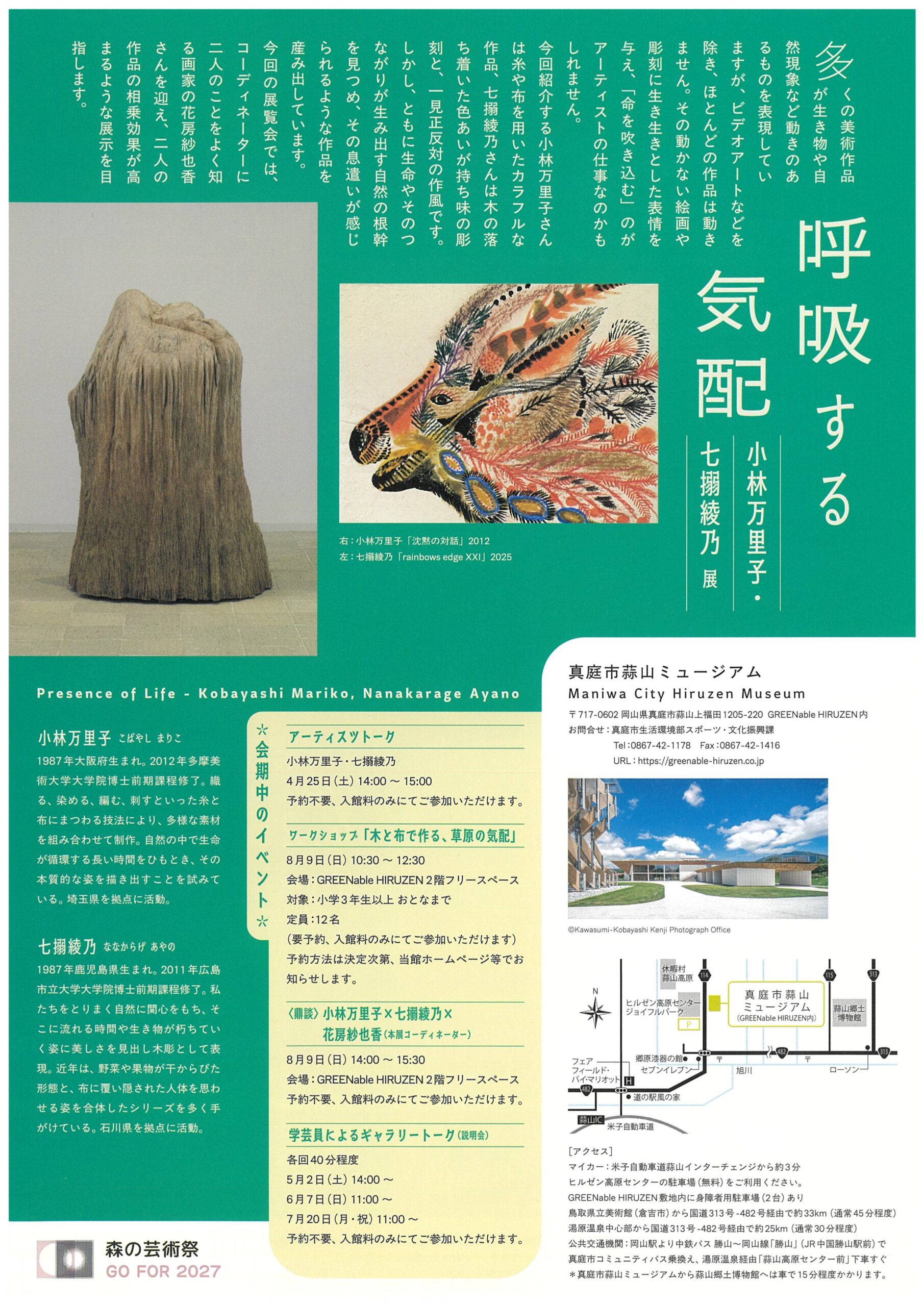 【4/25~9/6開催】蒜山ミュージアム展覧会「呼吸する気配 小林万里子・七搦綾乃 展」