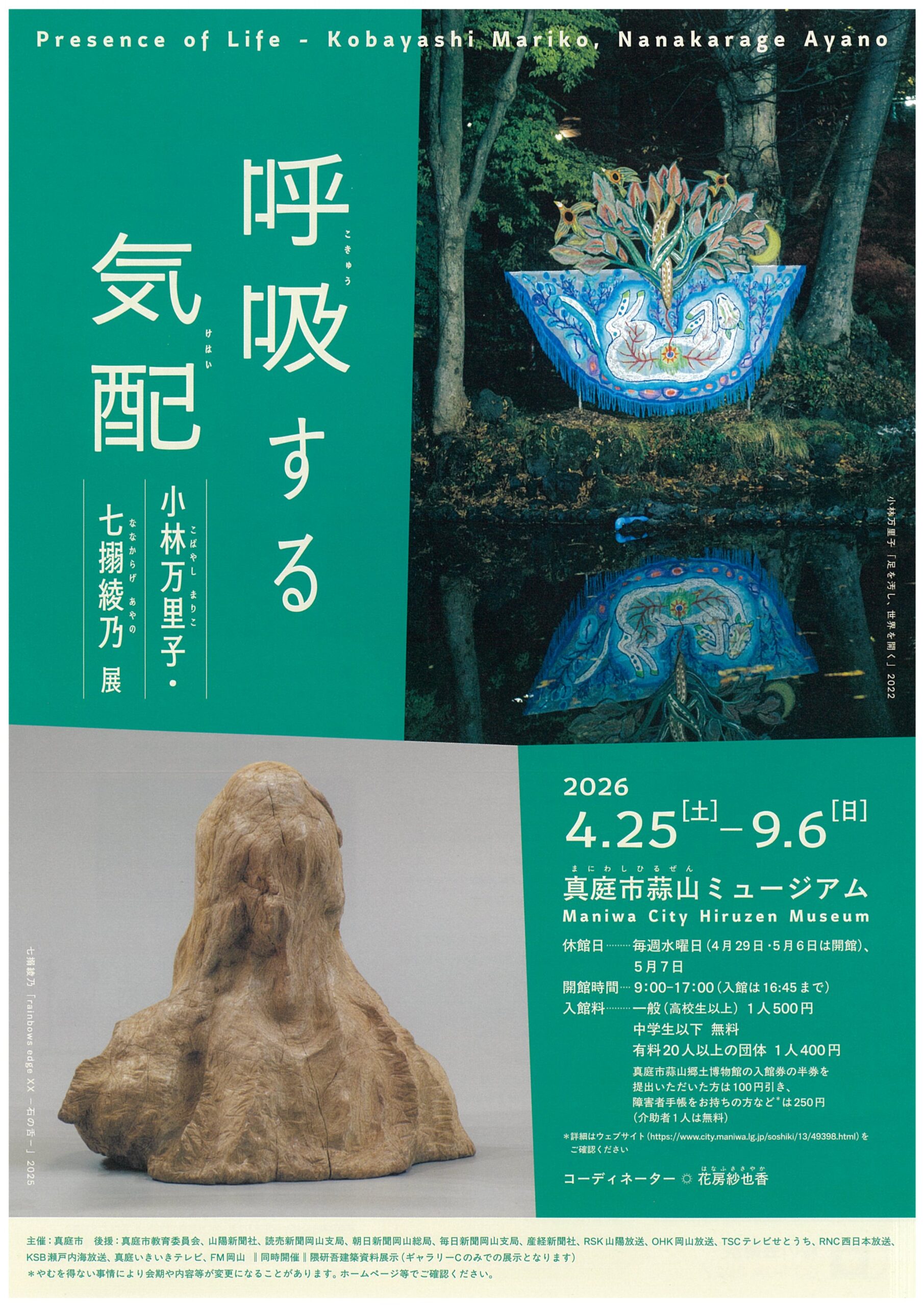 蒜山ミュージアムにて、展覧会「呼吸する気配 小林万里子・七搦綾乃 展」を開催します。