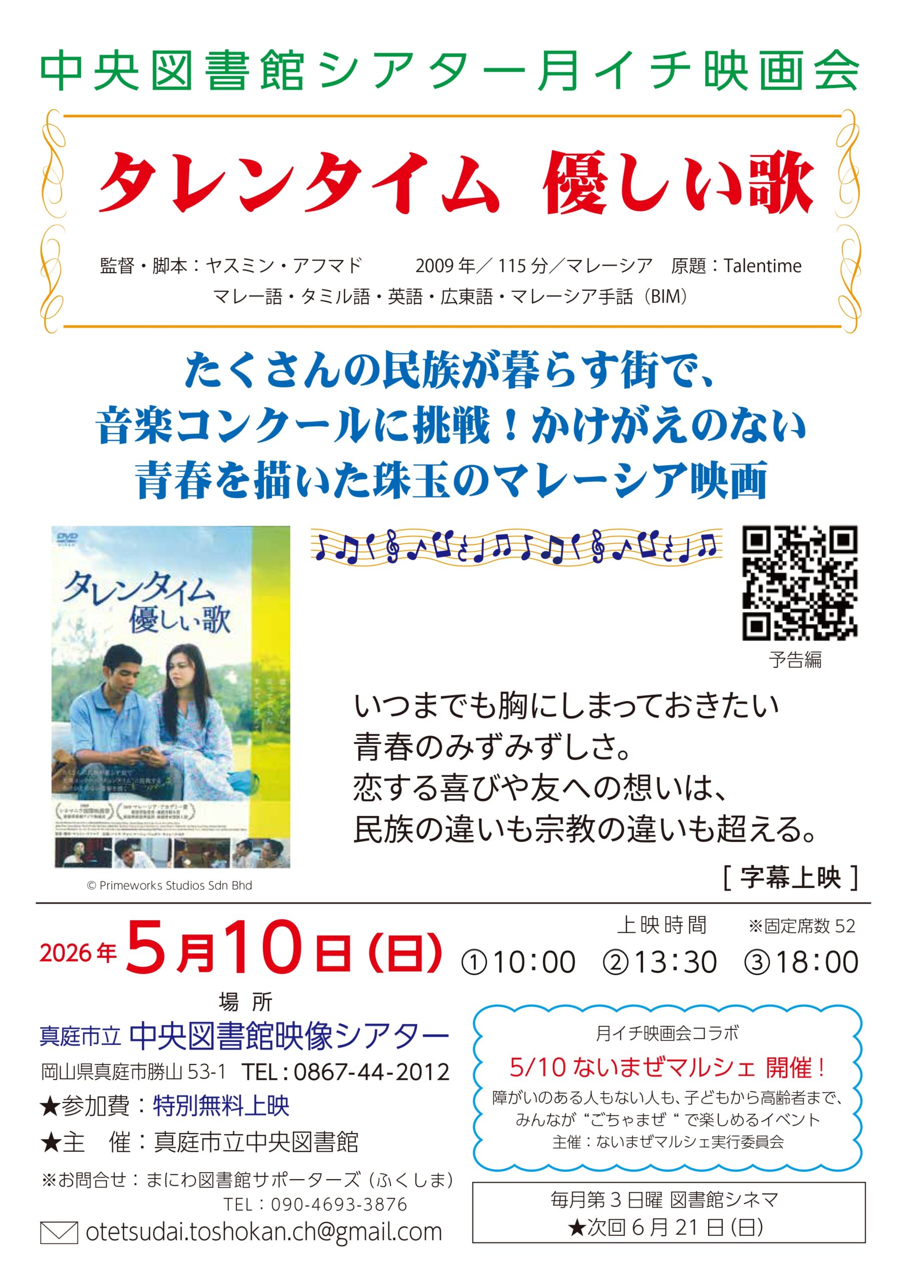 【特別無料上映】月イチ映画会「タレンタイム 優しい歌」|ないまぜマルシェも同時開催