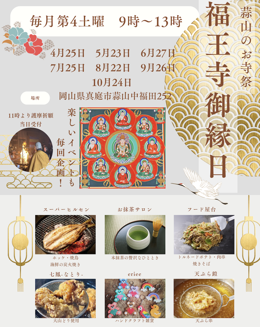 蒜山の福王寺では、毎月第4土曜に「御縁日」が開催されています。