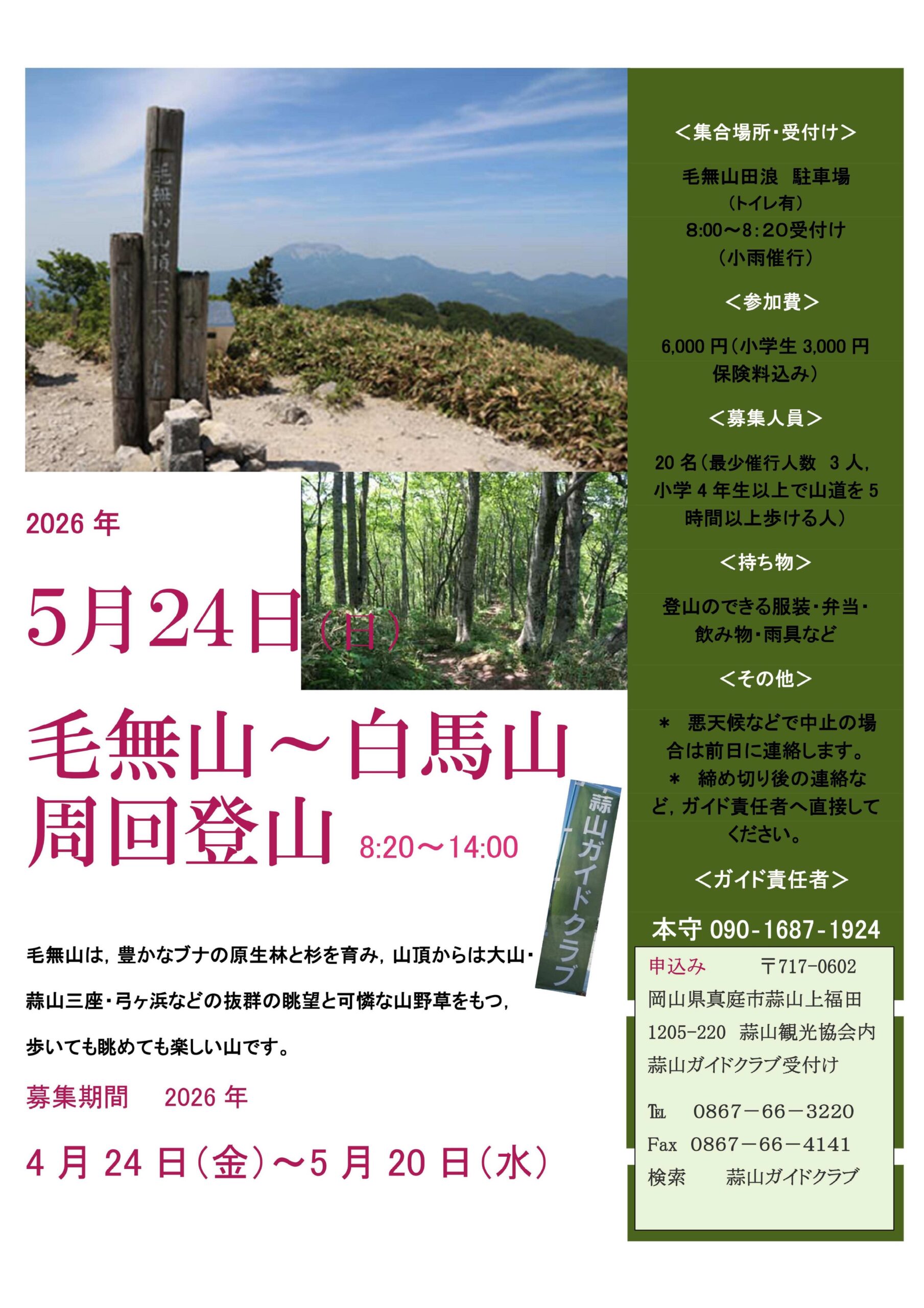 ◆お問い合わせ 蒜山観光協会内 蒜山ガイドクラブ事務局(岡山県真庭市蒜山上福田1205-220)