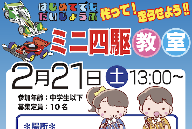 【2/14締切】ミニ四駆教室|作って!走らせよう!